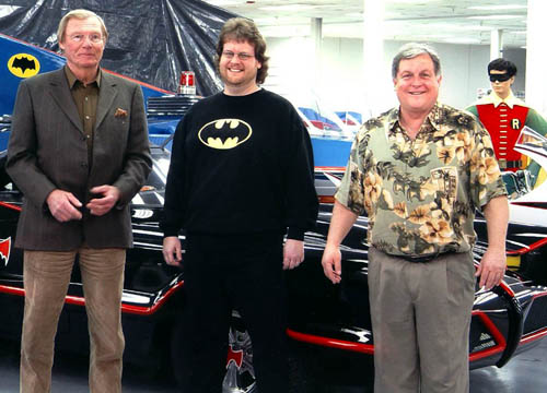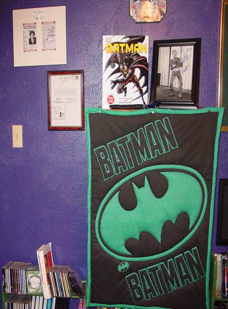 "Greeting Bat-Fans: I have been a fan of the Adam West, Burt Ward series since I was about two years old. I remember once when I was about four, my dad took off work early to take me to the mall to meet Winnie the Pooh. One mistake, on the way we passed through the TV department. And guess what was on? You got it, Batman. My dad is a very patience man, as I sat on the floor in that Sears store and watched a “Siren” episode, by the time it was over, so was the last showing for Winnie too. My grandfather took me to the same mall, different store when I was about 5 to meet Burt “Robin” Ward, I was so excited that all I could do once I got up to meet him was to stare, and was unable to utter a single sound. He politely asked me to step down, twice before my grandfather took my hand and escorted me from the store (I did get out with an autographed picture). My grandfather was a true gem, once school started he would faithfully watch each episode daily (since they came on during school time-pre VCR), and give me updates that afternoon on the old rotary telephone. Now, I’m all grown up and teach 4th grade. On rainy days, I show the series to my classes, hoping to inspire a whole new generation. This last summer my wife created my very own Batroom. We painted the walls purple, and then she painted murals on the walls depicting scenes from the series, the Animated Adventures, and Batman Beyond. She also made custom curtains, a lamp, and furnished it will several cool items to help enhance the overall feel of the room. (check the gallery below) In January 2004, we were able to meet the dynamic duo, and Frank Gorshin aka the Riddler at a convention here in Austin, Texas. We had the opportunity to dine with them (along with about 30 other folks), get all of their autographs, and get our picture taken in the Batmobile. It is truly an experience I will always treasure, and I was finally able to have that conversation with Burt Ward making up for my silence almost 33 years earlier. So, in conclusion, there have been various other actors to put on the cowl and cape, but from a line in a Simpson’s episode, Adam says “pure West”, and I’ll have to agree with that, that Adam and Burt make up the essence in my mind of just what the dynamic duo are, and always will be. I would also like to say thanks to Scott for creating this page for the fans." |