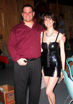 It was a great photo shoot (some thoughts running through my head, "Okay, boobs out, pelvis forward, shoulders back... get a load o' this, Batman! You likey? Then marry me and we'll be perfect super-hero spouses, please please please please please?!?!?!") It's true I didn't want to take off the suit. When we took the suit back to Wally's, I tried to buy it off him. I kept thinking of ways I should have posed in it, but didn't think of at the time. But Wally managed to pry it out of my hands, which was okay, I guess, because then I could pet his cute dog (there really is a dog, that's not a new expression for, uh, you know...). |
