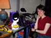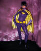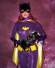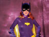 Well, time passed and Batman faded from the airwaves. But the "damage" was done. Batman and Batgirl were my ideals of male and female adulthood. So I arranged to grow up to be a shapely petite woman, so I'd be ready to find my Batman (okay, that part happened naturally, but I wonder sometimes if my mind influenced my physical shape). Anyway, as a real grown-up with work and responsibilities, I'd sort of put Batman out of my head until I met Rob, who revived my interest and enthusiasm. Rob has shown me you can be a grown-up and still go ga-ga over Batman! When, he told me he might be able to get me a Batgirl suit to pose in, I told him that was a nice thought but not to knock himself out. He was sweet to even try and that meant a lot to me. However, thanks to Wally, Rob was actually able to obtain the Batgirl suit for one afternoon. One glorious afternoon! An afternoon that was a dream come true. From the moment I put the suit on and it fit perfectly, I felt transformed. I was that wholesome, yet sexy, agent of justice who could be Batman's other half.