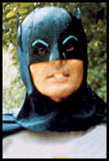 Scott: What was the fascination with the cowl? Wally: Just to look at it. It was like a three-dimensional cartoon. The way it looked kinda cartoony but still 3-D with the black ears and the black face thing and the eyebrows were so cartoony looking. I don't know, just the sheen of it, and just how Adam looked in it. I think the angularity of it. Just how his jaw looked with how the thing curved and with the angularity of that with the ears. I'd never seen anything like it before. |