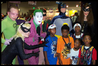 would you say is the most fun thing about being in costume? Wally: Umm…there’s so many fun things. I guess the look on a kid’s face. Because when we were in Austin [ for a 2004 1966 Batman convention where he appeared with the Gotham Gang] it was cool because the parents came to meet Adam, Burt and Frank. But they said, “Oh Timmy…Batman, Robin and the Riddler are going to be there.” Thinking that the kid is going to think Adam West, Burt Ward and Frank Gorshin, but as a kid, he’s thinking of the TV show that he just saw last night which was over thirty-five years ago and that they are going to be there in costume. So they mean different things to |