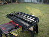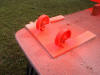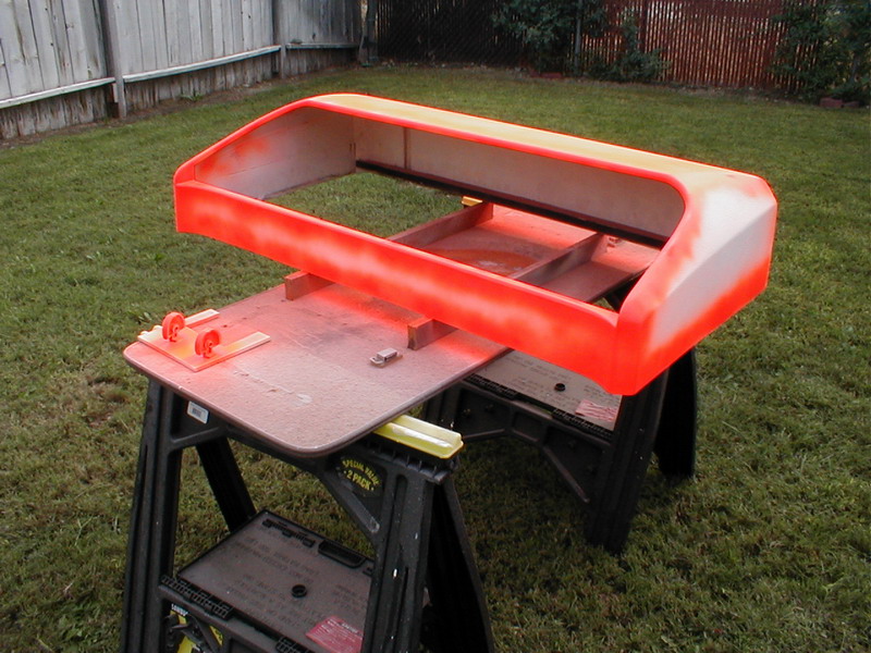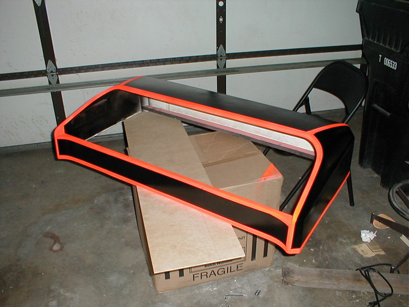 All the insides were taken out of the controllers’ plastic shells and worked into the wood framing that I built inside the CDX’s original wood frame. With many trips to Home Depot and Radio Shack, I finished the wood and electronics throughout a week of steady work. The body has been painted to resemble the look and feel of the Batmobile from the 60’s TV series with a high gloss black body and fluorescent orange trim. The funny thing is that the painting went a lot faster than I thought ( two days), and the wood and electronics took all week.