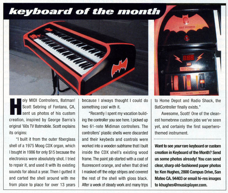 It was then featured as “Keyboard of the Month” the February 2002 issue of KEYBOARD magazine.