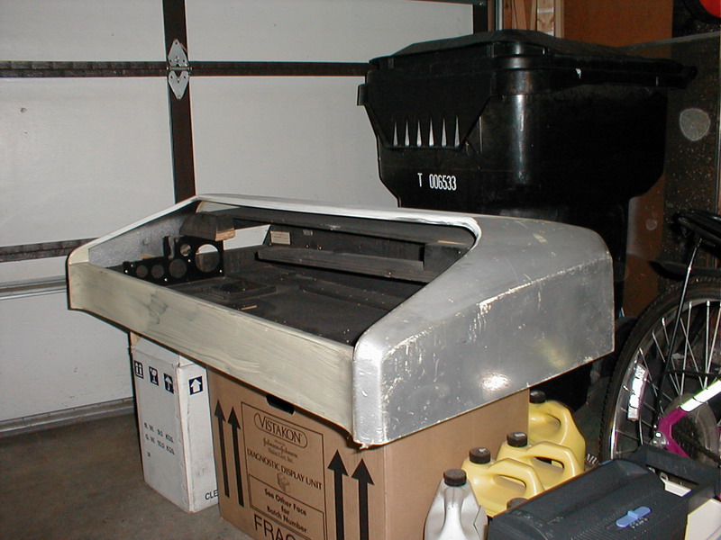 During the week of 10-29-2001 through 11-04-2001, I decided to take on a project that I put off for over 13 years. It was a two tier customized controller that had been inspired by the 1966 TV Batmobile built by George Barris. I built it from the outer fiberglass shell of a 1975 Moog CDX organ.